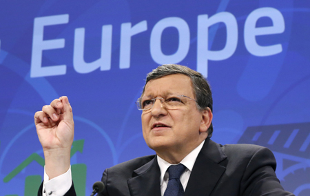 圖為歐盟委員會(huì)主席巴羅佐當(dāng)日在布魯塞爾出席新聞發(fā)布會(huì)。