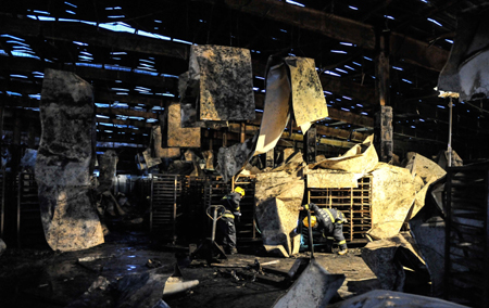6月3日,吉林省德惠市米沙子鎮(zhèn)寶源豐禽業(yè)有限公司發(fā)生火災(zāi)。截至發(fā)稿,此次火災(zāi)已造成119人遇難。搜救工作仍在進(jìn)行中,受傷人員已經(jīng)送往醫(yī)院救治。 圖為消防官兵在火災(zāi)事故現(xiàn)場進(jìn)行搜救。