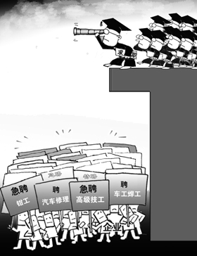 除去將近700萬(wàn)應(yīng)屆生的基數(shù)壓力,高等教育和市場(chǎng)需求的不匹配也是造成應(yīng)屆生就業(yè)困難的重要原因。麥肯錫公司的最新報(bào)告指出,中國(guó)的勞動(dòng)力市場(chǎng)還不能完全適應(yīng)中國(guó)經(jīng)濟(jì)的飛速發(fā)展。表現(xiàn)之一是擇業(yè)地域不匹配。大城市高技能人才富余,而中小城市捉襟見(jiàn)肘。之二是未來(lái)知識(shí)需求和就業(yè)隊(duì)伍結(jié)構(gòu)不匹配。目前,中國(guó)每年培養(yǎng)出的大學(xué)畢業(yè)生遠(yuǎn)遠(yuǎn)超出各經(jīng)濟(jì)部門(mén)對(duì)人才的需求。而在未來(lái),隨著中國(guó)經(jīng)濟(jì)增長(zhǎng),服務(wù)業(yè)和知識(shí)密集型制造業(yè)職位數(shù)量增長(zhǎng),將推高對(duì)高技能人才的需求。