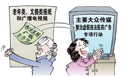 整治虛假違法醫(yī)藥廣告專項(xiàng)行動(dòng)開展一個(gè)多月來(lái),主要大眾傳播媒體廣告違法率大幅下降,嚴(yán)重違法醫(yī)藥廣告數(shù)量明顯減少,但老年類、文摘類報(bào)紙和廣播電視報(bào)上刊載的醫(yī)藥廣告違法問(wèn)題依然突出。這是記者日前從國(guó)家工商行政管理總局廣告司了解到的。