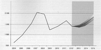 貿發(fā)會議預計,2013年直接投資仍將接近2012年的水平,上限為1.45萬億美元。隨著宏觀經濟狀況改善以及投資者在中期恢復信心,跨國公司可能會將其創(chuàng)紀錄的現金持有量轉化為新的投資。之后,外國直接投資流量可能會在2014年攀升至1.6萬億美元,在2015年達到1.8萬億美元。