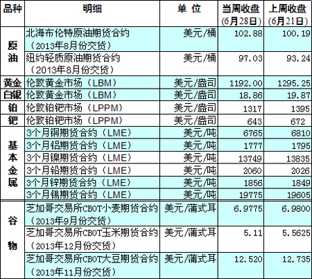 國(guó)際大宗商品期貨價(jià)格明細(xì)表[2013-07-01]