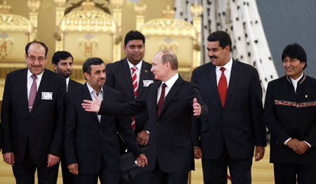 當(dāng)?shù)貢r(shí)間7月1日,為期兩天的天然氣出口國論壇在莫斯科舉行。俄羅斯總統(tǒng)普京(右三)在克里姆林宮與出席論壇的伊朗、委內(nèi)瑞拉等國領(lǐng)導(dǎo)人集體合影。普京在論壇首日呼吁天然氣出口國之間加強(qiáng)合作,形成單一定價(jià)機(jī)制。近年來,頁巖氣在北美等地逐漸擴(kuò)大開發(fā)利用規(guī)模,重塑世界能源市場(chǎng)格局,傳統(tǒng)的天然氣出口國遭遇嚴(yán)峻挑戰(zhàn)。