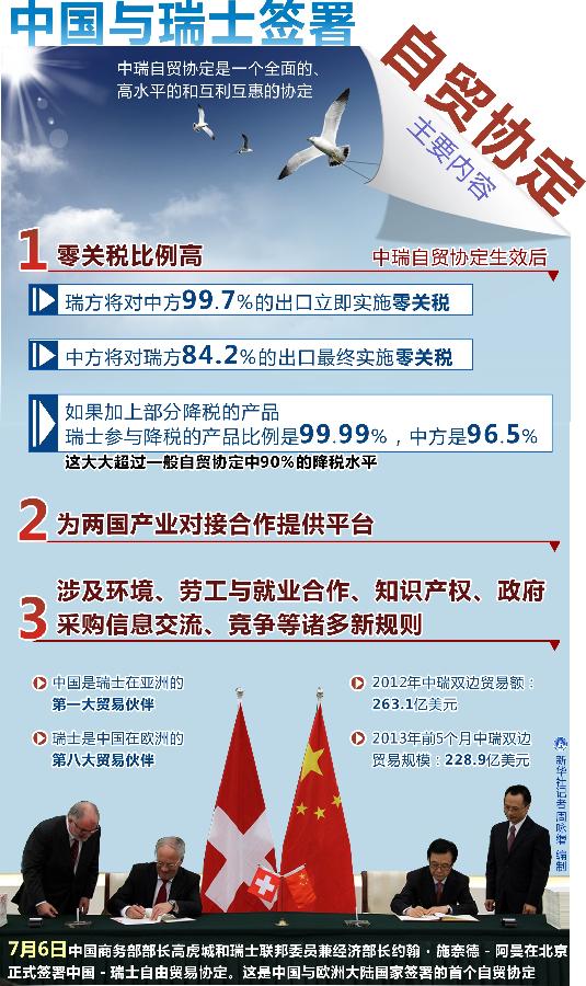 中瑞自貿(mào)協(xié)定:開(kāi)放程度高 內(nèi)容廣泛