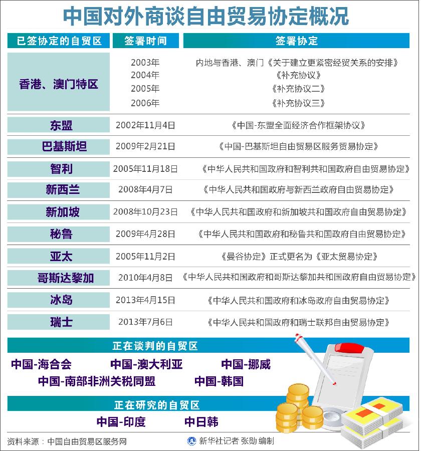 圖表:中國(guó)對(duì)外商談自由貿(mào)易協(xié)定概況 新華社記者 張勛 編制