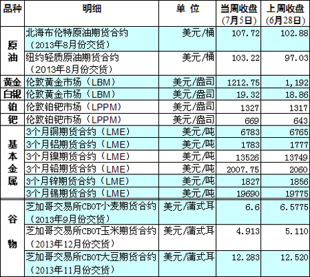 國際大宗商品期貨價格明細表[2013-07-01]