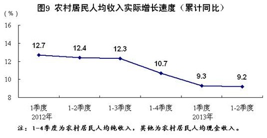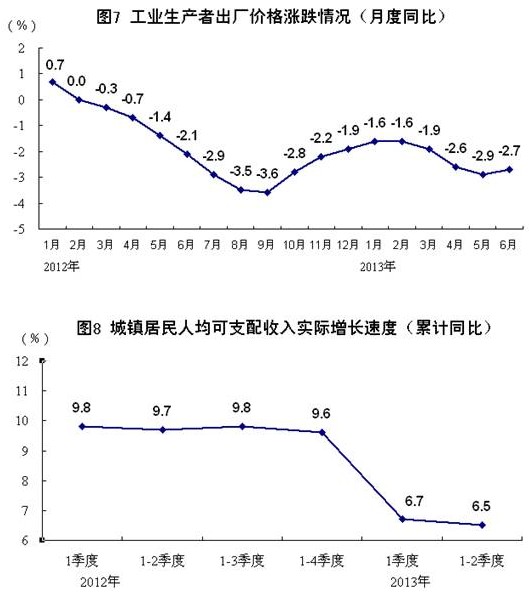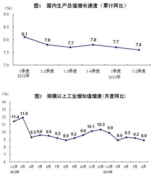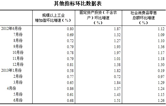 2012年各季度及2013年一、二季度GDP環(huán)比增速分別為1.5%、2.1%、2.0%、1.9%、1.6%和1.7%。