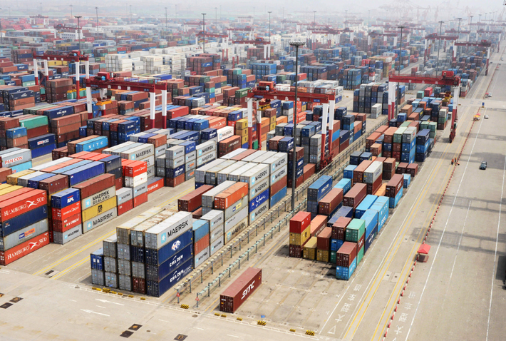 青島港外貿(mào)集裝箱堆場。新華社發(fā) 俞方平/攝 |