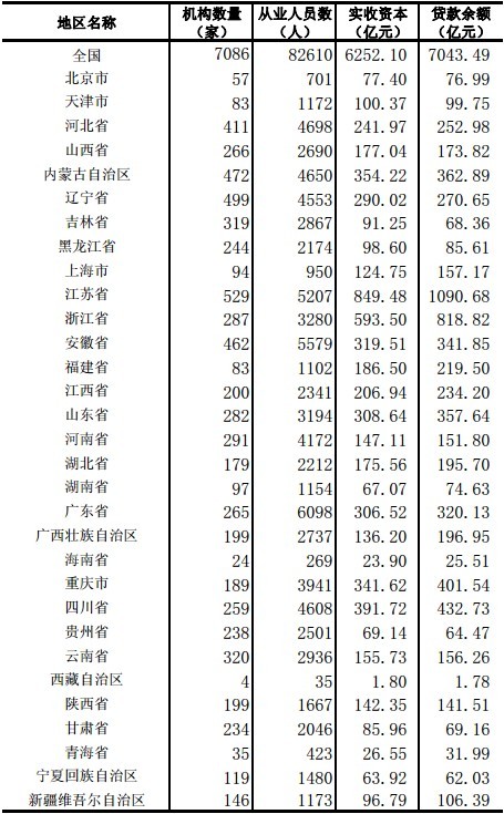 央行網(wǎng)站29日消息,截至2013年6月末,全國共有小額貸款公司7086家,貸款余額7043億元,上半年新增貸款1121億元。