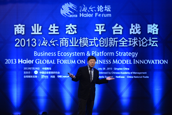 在當(dāng)天舉行的“2013海爾商業(yè)模式創(chuàng)新全球論壇”上,海爾集團董事局主席、首席執(zhí)行官張瑞敏就互聯(lián)網(wǎng)時代的企業(yè)管理闡述了他的管理理念。
