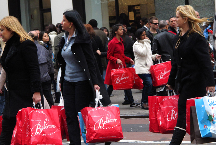 美國(guó)經(jīng)濟(jì)復(fù)蘇加快,消費(fèi)者信心回升。圖為美國(guó)消費(fèi)者購(gòu)物。新華社/美聯(lián)