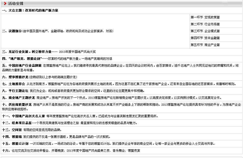 2013博鰲房地產(chǎn)論壇活動(dòng)安排
