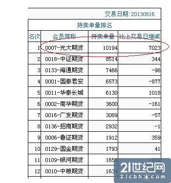 據(jù)中金所下午4點28分公布的數(shù)據(jù)顯示,今日股指期貨收盤后,光大期貨方面在主力合約IF1309持有的空單量新增7023手,達(dá)到史無前例的10194手,名列所有期貨公司空單持倉排名第一。