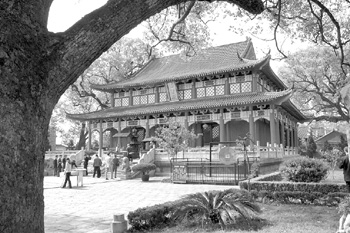 如今,天師府內(nèi)香煙燎繞,氤氳著濃郁的宗教色彩;道教樂曲縹縹緲緲,彌漫著祥和的文化氣氛。而一棵棵遮天蔽日的古樟樹,似乎在告訴人們,道教在中國有著多么厚重的歷史淵源。