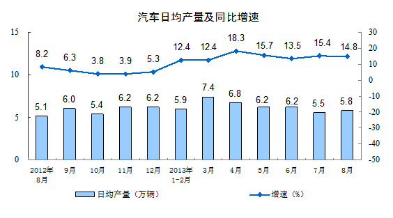 分行業(yè)看,8月份,41個(gè)大類行業(yè)中有39個(gè)行業(yè)增加值保持同比增長。其中,紡織業(yè)增長8.1%,化學(xué)原料和化學(xué)制品制造業(yè)增長12.3%,非金屬礦物制品業(yè)增長11.7%,黑色金屬冶煉和壓延加工業(yè)增長13.6%,通用設(shè)備制造業(yè)增長8.0%,汽車制造業(yè)增長13.9%,鐵路、船舶、航空航天和其他運(yùn)輸設(shè)備制造業(yè)增長2.2%,電氣機(jī)械和器材制造業(yè)增長12.8%,計(jì)算機(jī)、通信和其他電子設(shè)備制造業(yè)增長10.7%,電力、熱力的生產(chǎn)和供應(yīng)業(yè)增長12.2%。