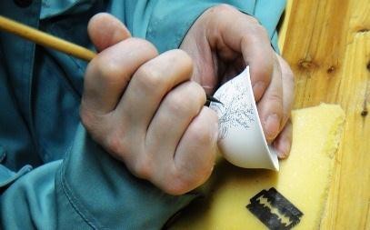 青花繪畫裝飾是一項(xiàng)精細(xì)且富于藝術(shù)創(chuàng)造性的工作,對瓷工的技能有著很高的要求。傳統(tǒng)的青花瓷繪技藝分為畫面設(shè)計(jì)、過稿、勾線、分水等幾個(gè)步驟。