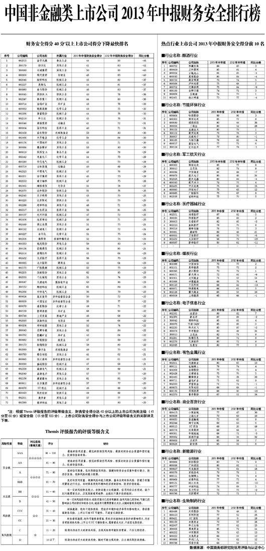 中國非金融類上市公司2013年中報財務(wù)安全排行榜