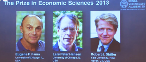 據(jù)諾貝爾官方網(wǎng)站消息,2013年“瑞典國(guó)家銀行紀(jì)念阿爾弗雷德·諾貝爾經(jīng)濟(jì)學(xué)獎(jiǎng)”在當(dāng)?shù)貢r(shí)間14日揭曉,美國(guó)經(jīng)濟(jì)學(xué)家尤金·法馬、拉爾斯·皮特·漢森以及羅伯特·J·席勒獲獎(jiǎng)。
