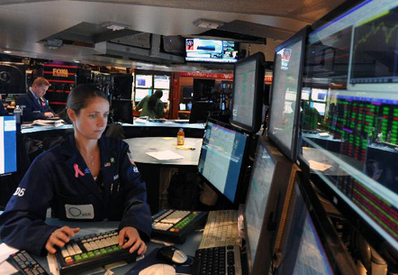 10月18日,交易員在紐約股票交易所內(nèi)操作。新華社記者王雷攝