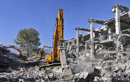 11月4日,大型機械在北京市昌平區(qū)拆除違法建設(shè)的“小產(chǎn)權(quán)房”。近日,北京市開始對京郊北部地區(qū)的昌平區(qū)陽坊鎮(zhèn)東貫市村內(nèi)的13棟4層小樓進行拆除。據(jù)悉,此次拆除面積約4萬平方米。