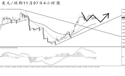 美元兌瑞郎持續(xù)對上周的低位反彈走勢進行修正。4小時圖上看,匯價前方的上沖斜率加大,逐步遠離了上升趨勢線,后市有向0.9060一帶發(fā)起回調(diào)的風險。雖然均線系統(tǒng)保持依托狀態(tài),但前方道氏高點0.9175的壓制力較強,在突破此點位之前,看漲需謹慎。預(yù)計短線匯價仍有進一步下行的風險。