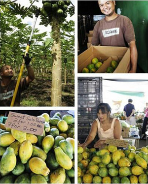 木瓜是生物技術(shù)公司瞧不上的小作物,卻是美國(guó)夏威夷州農(nóng)業(yè)支柱。上世紀(jì)90年代,公共科研機(jī)構(gòu)植物病毒學(xué)家戴尼斯·岡薩弗斯培育的轉(zhuǎn)基因抗病毒木瓜“彩虹”得以推廣,拯救了受環(huán)斑病毒危害的木瓜產(chǎn)業(yè)。如今,夏威夷木瓜除銷往美國(guó)本土和加拿大外,也占據(jù)了日本市場(chǎng)。