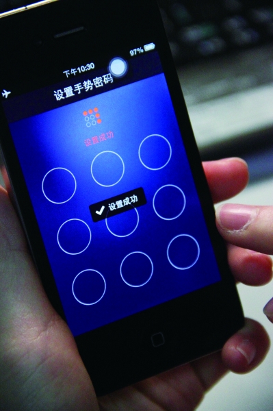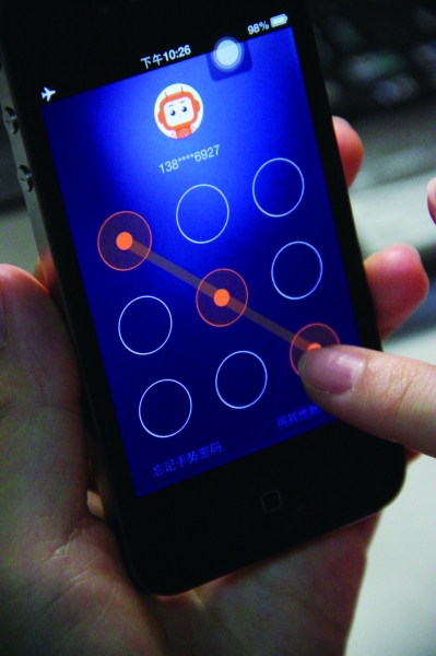 上午,《法制晚報》記者用一部安裝了iOS6的iPhone4手機進行測試,前后用時不到兩分鐘,便重新設(shè)置了支付寶圖形密碼,并順利為手機充值50元。
