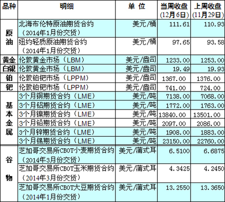國(guó)際大宗商品期貨價(jià)格明細(xì)表[2013-12-9]