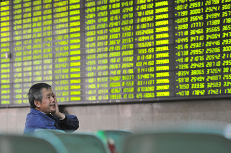 1月6日,本周首個(gè)交易日,滬深股市繼續(xù)下行走勢(shì)。上證綜指跌1.8%收?qǐng)?bào)2045.71點(diǎn),深證成指跌2.61%收?qǐng)?bào)7818.46點(diǎn)。進(jìn)入2014年后,滬深股市連續(xù)3個(gè)交易日下跌,按照6日當(dāng)天的收盤點(diǎn)位計(jì)算,新年以來(lái)滬深股指累計(jì)跌幅分別達(dá)到3.32%和3.73%。圖為一位股民在南京一家證券交易大廳內(nèi)以手掩面。