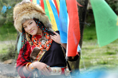 身穿藏族服飾的林芝女子