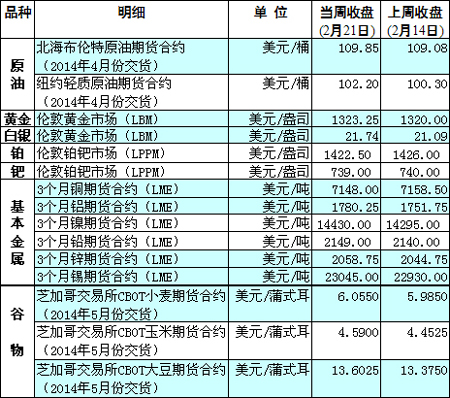 國(guó)際大宗商品期貨價(jià)格明細(xì)表[2014-2-17]