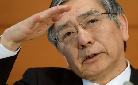 日本中央銀行(日本銀行)11日做出決定,維持現(xiàn)行超寬松貨幣政策不變,同時連續(xù)第六個月對該國經(jīng)濟做出“繼續(xù)溫和復(fù)蘇”的評估。盡管日本經(jīng)濟增速放緩,且上調(diào)消費稅措施即將來臨,但日本央行依舊看好日本經(jīng)濟復(fù)蘇前景,認(rèn)為日本經(jīng)濟將逐漸擺脫通縮困局。圖為日本央行總裁黑田東彥在貨幣政策會議結(jié)束后出席新聞發(fā)布會。