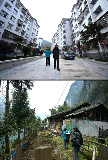 近些年,一批批惠農(nóng)政策的實(shí)施,讓湖北省恩施土家族苗族自治州宣恩縣的董興林看到了進(jìn)城的希望。農(nóng)業(yè)稅費(fèi)減免、城鄉(xiāng)居民養(yǎng)老保險(xiǎn)、廉租房、農(nóng)村合作醫(yī)療等惠民政策,解決了董興林一家人進(jìn)城的后顧之憂。讓董興林感到更加高興的是,當(dāng)?shù)卣一次性分配給董興林一家4套廉租房。2011年1月,董興林一家終于實(shí)現(xiàn)了他們的“進(jìn)城”夢(mèng)。左圖為董興林與妻子在縣城里的廉租房小區(qū)散步。右圖為2013年12月18日拍攝的董興林在深山中的老家。新華社發(fā)(宋文