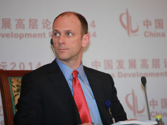 “中國發(fā)展高層論壇2014”于3月22日-24日在釣魚臺舉行。上圖為美國芝加哥大學(xué)教授;美國總統(tǒng)經(jīng)濟(jì)顧問委員會前主席奧斯坦-古斯比。