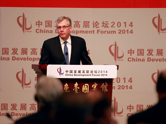 “中國發(fā)展高層論壇2014”于3月22日-24日在釣魚臺舉行?ㄌ乇死展径麻L,首席執(zhí)行官道格拉斯·歐博赫曼在致辭時表示,更關(guān)心中國怎么構(gòu)建開放型的經(jīng)濟,怎么讓這個市場扮演更具有決定性的作用。
