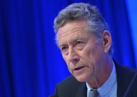 圖為IMF經(jīng)濟(jì)參事、研究部門主管奧利維耶·布蘭查德8日在IMF華盛頓總部的新聞發(fā)布會(huì)上發(fā)言。