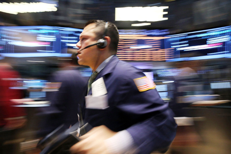 圖為交易員在美國紐約證券交易所忙碌。