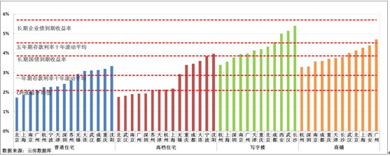 圖2 各城市各物業(yè)長期租賃回報率