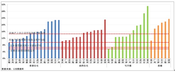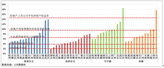 圖1 各城市各物業(yè)靜態(tài)租賃回報率