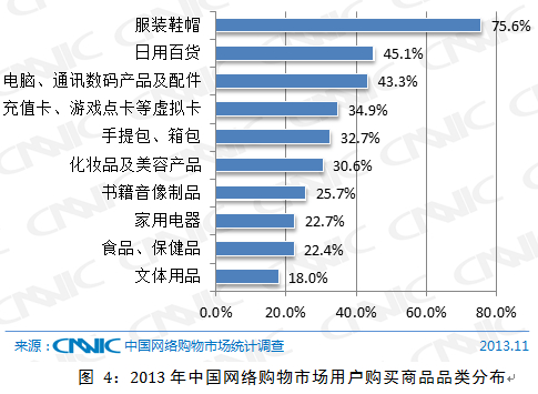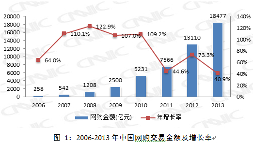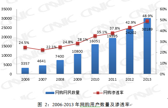 2014年4月,中國互聯(lián)網(wǎng)絡(luò)信息中心CNNIC發(fā)布了《2013年中國網(wǎng)絡(luò)購物市場研究報告》。報告顯示,2013年網(wǎng)絡(luò)購物市場穩(wěn)步快速向前發(fā)展,彰