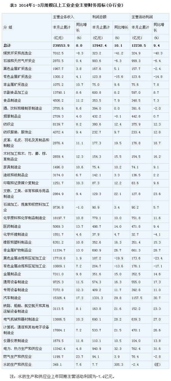 1-3月份,全國(guó)規(guī)模以上工業(yè)企業(yè)實(shí)現(xiàn)利潤(rùn)總額12942.4億元,同比增長(zhǎng)10.1%,增速比1-2月份提高0.7個(gè)百分點(diǎn);實(shí)現(xiàn)主營(yíng)活動(dòng)利潤(rùn)12238.5億元,同比增長(zhǎng)9.4%,增速比1-2月份提高1個(gè)百分點(diǎn)。