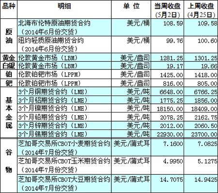 國際大宗商品期貨價格明細表[2014-5-5]