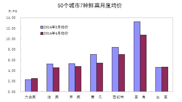 從發(fā)布的環(huán)比數(shù)據(jù)看,4月份鮮菜和豬肉價(jià)格下降比較突出,兩者合計(jì)影響CPI下降0.51個(gè)百分點(diǎn),超過了CPI總降幅,是環(huán)比下降的主要原因。從歷史數(shù)據(jù)看,鮮菜價(jià)格為近三年同期最低水平。國(guó)家統(tǒng)計(jì)局此前發(fā)布的50個(gè)城市主要食品價(jià)格監(jiān)測(cè)數(shù)據(jù)也顯示,今年4月份黃瓜、豆角、西紅柿和油菜每千克均價(jià)分別為5.42元、10.74元、7.07元和4.53元,比3月份均價(jià)分別下降了23.2%、18.7%、16.0%和14.1%,價(jià)格下降較多。