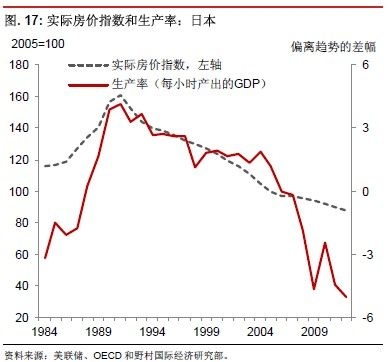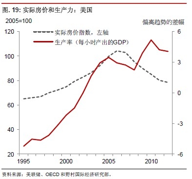 我們觀察到,在房地產(chǎn)市場大幅調(diào)整之前或同時,往往會出現(xiàn)生產(chǎn)率增長下降的情況。20 世紀(jì)80