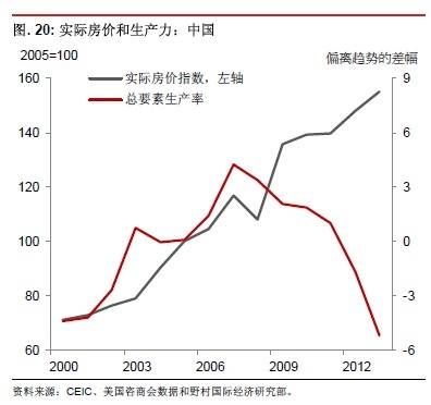 2009).2008 年之前的中國經(jīng)濟(jì)生產(chǎn)率一直處于“奇跡增長”階段,但之后開始放緩(圖20), 2013 年3 月15