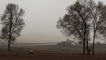 大中礦業(yè)書(shū)記溝鐵礦項(xiàng)目位于內(nèi)蒙古自治區(qū)烏拉特前旗小佘太鎮(zhèn)聯(lián)豐村,聯(lián)豐村由蘇計(jì)溝組、小井溝組、聯(lián)豐組等數(shù)個(gè)村小組所組成。5月15日,記者驅(qū)車(chē)來(lái)此采訪,這個(gè)鐵礦項(xiàng)目占地龐大、十分醒目,項(xiàng)目綿延數(shù)千米,風(fēng)一吹,整個(gè)生產(chǎn)線呈現(xiàn)出一條硝煙狀沙帶,在廠區(qū)外,形成了很大一片區(qū)域的沙漠狀沙丘。