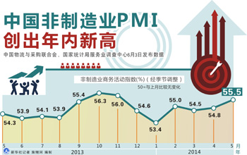 中國(guó)物流與采購(gòu)聯(lián)合會(huì)、國(guó)家統(tǒng)計(jì)局服務(wù)業(yè)調(diào)查中心3日發(fā)布數(shù)據(jù)顯示,5月非制造業(yè)商務(wù)活動(dòng)指數(shù)(官方非制造業(yè)PMI)達(dá)到55.5%,環(huán)比上升0.7個(gè)百分點(diǎn),創(chuàng)出年內(nèi)新高。5月匯豐中國(guó)制造業(yè)采購(gòu)經(jīng)理人指數(shù)(匯豐制造業(yè)PMI)終值同日發(fā)布,達(dá)到49.4%,明顯高于上月終值48.1%,創(chuàng)4個(gè)月新高。