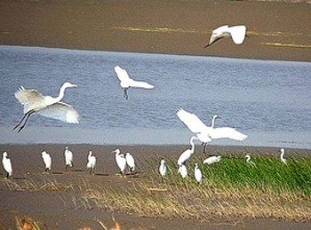 注:千河是渭河主要支流,穿越千陽(yáng)縣境而過(guò)。20世紀(jì)70年代千河上修起庫(kù)容4億多立方米的馮家山水庫(kù),謂之千湖。2008年11月經(jīng)批準(zhǔn),在千陽(yáng)縣城附近依托馮家山水庫(kù)庫(kù)尾區(qū)位優(yōu)勢(shì),設(shè)立了融生態(tài)自然景觀和人文景觀于一體的千湖國(guó)家濕地公園。公園總面積573公頃,是以河流濕地特征為主,集河流濕地、庫(kù)塘濕地、沼澤濕地特征于一體的典型的黃土高原濕地。濕地公園林草茂盛,水產(chǎn)豐富,鳥(niǎo)類繁多,湖畔千陽(yáng)中學(xué)書(shū)聲瑯瑯,慕名而來(lái)的省內(nèi)外游客絡(luò)繹不絕。農(nóng)家樂(lè)炊煙裊裊,游客其樂(lè)融融。濕地兩岸目前建有水生植物園、門戶區(qū)、鳥(niǎo)類觀賞區(qū)、秦風(fēng)民俗園等10大重點(diǎn)景區(qū),推出了滑沙、攀巖、垂釣、遛馬、休閑自行車、鳥(niǎo)類放飛等游樂(lè)項(xiàng)目,被譽(yù)為“濕地典范、人文樂(lè)園、養(yǎng)生天堂”。當(dāng)?shù)厝罕娨苑窖允①潱汉玫煤,嘹扎咧?/FONT>