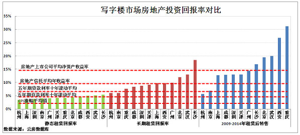 北京云房數(shù)據(jù)技術有限公司與北京仁達房地產(chǎn)評估有限公司聯(lián)合發(fā)布的《2014上半年中國房地產(chǎn)投資回報率調查報告》顯示,2014