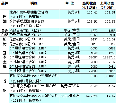 國(guó)際大宗商品期貨價(jià)格明細(xì)表[2014-6-16]